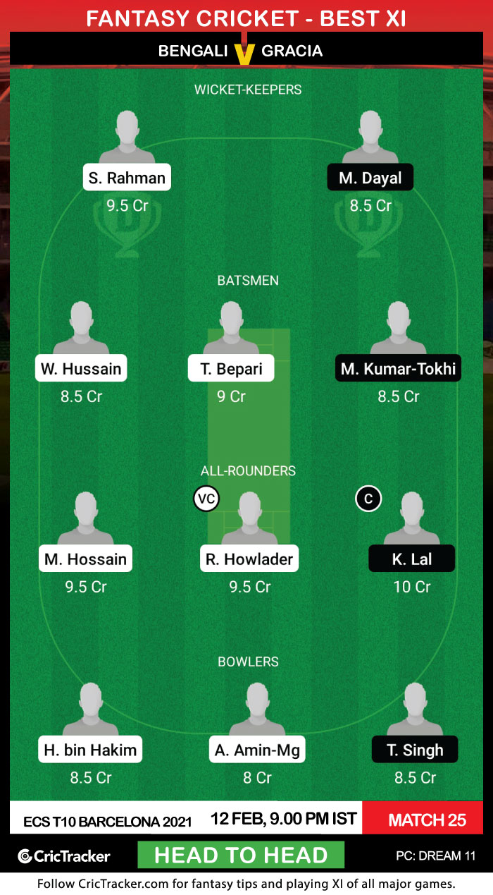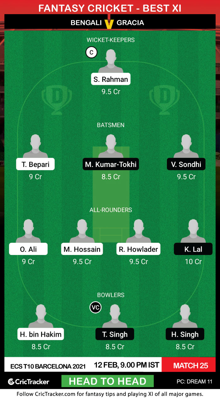 The 25th match of the ECS T10 Barcelona 2021 will be played between Bengali and Gracia on 12th February, at the Montjuic Olympic Ground in Barcelona.