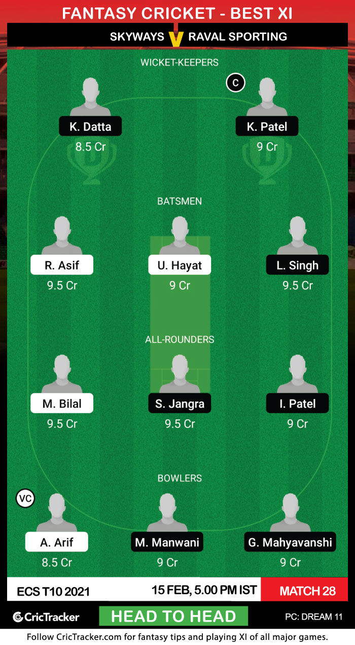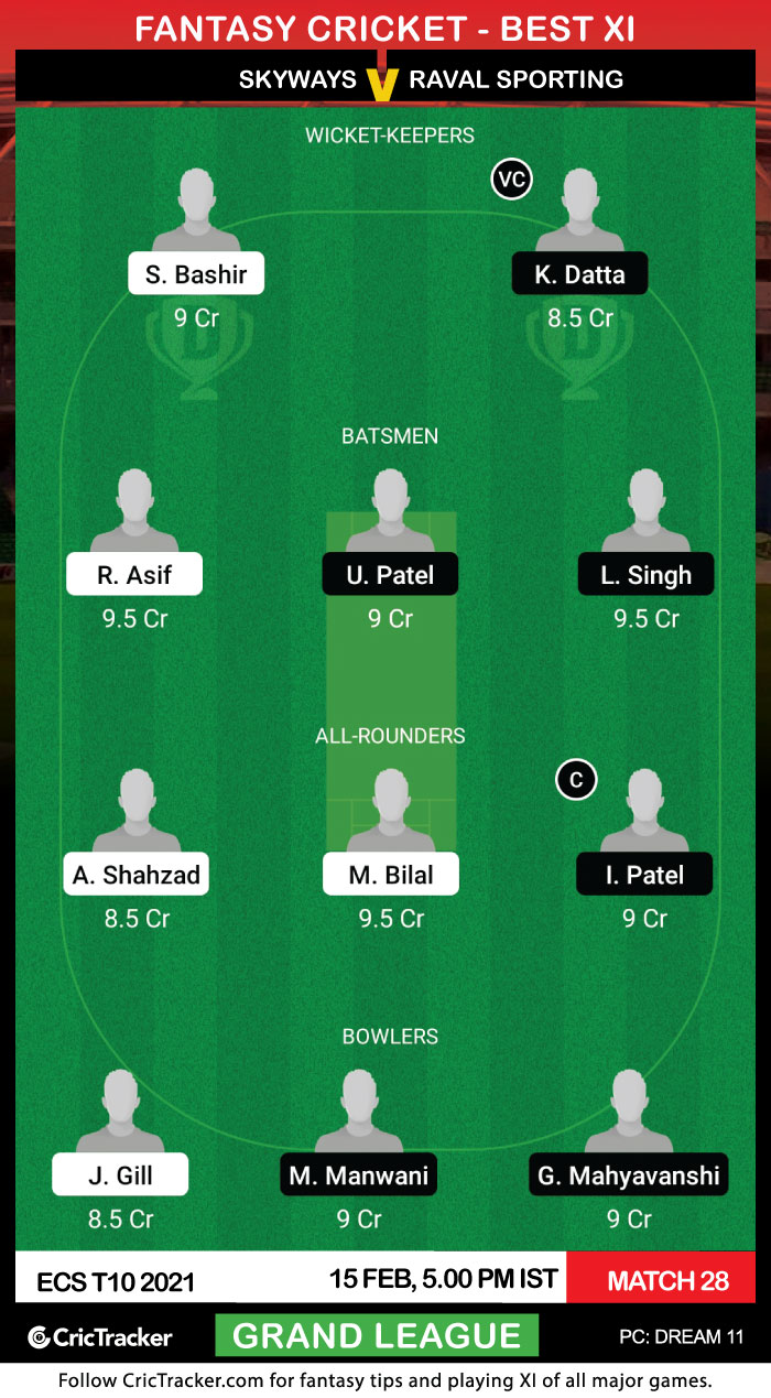 In the Group C Contest, Skyways and Raval Sporting will square off against each other in the 28th match of the ECS T10 2021. Skyways are a new side and e making a debut in the ECS circuit. They are ready to make full use of this opportunity and would want to kick-start their campaign on a higher note. It will be interesting to see how they will approach the match as they are taking on an experienced side Raval Sporting.