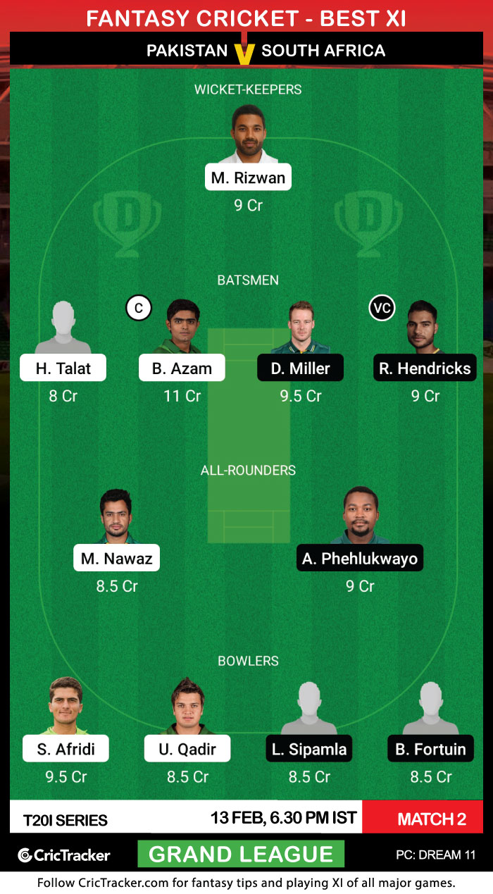 Suggested Playing XI No.2 for PAK vs SA Dream11 Fantasy Cricket: