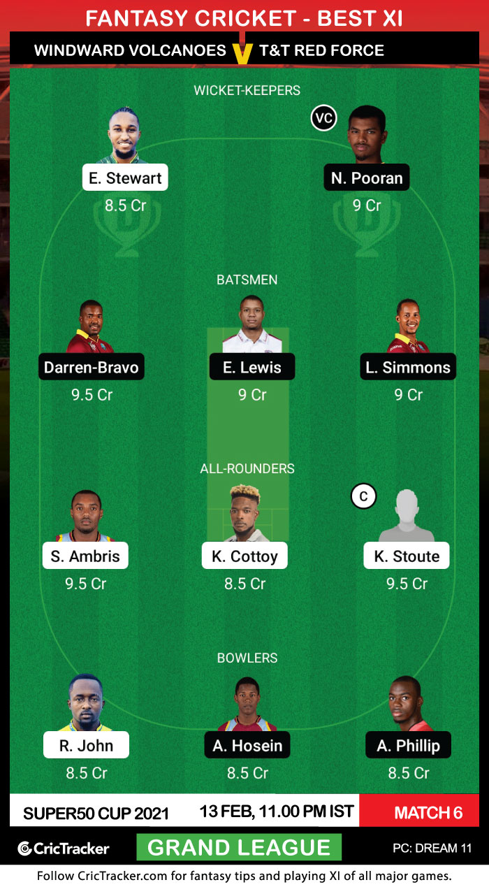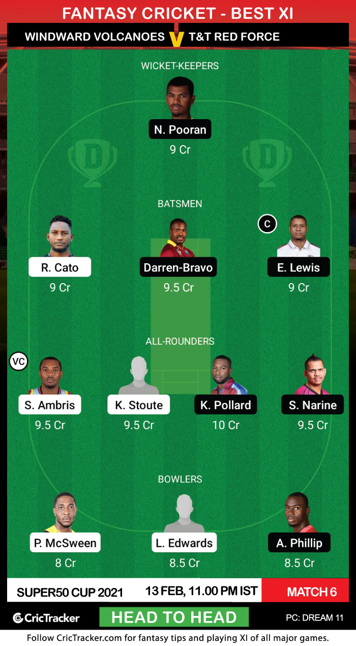 The 6th match of the Super50 Cup 2021 will be played between the Windward Volcanoes and T&T Red Force on 13th February at Coolidge Cricket Ground in Antigua.