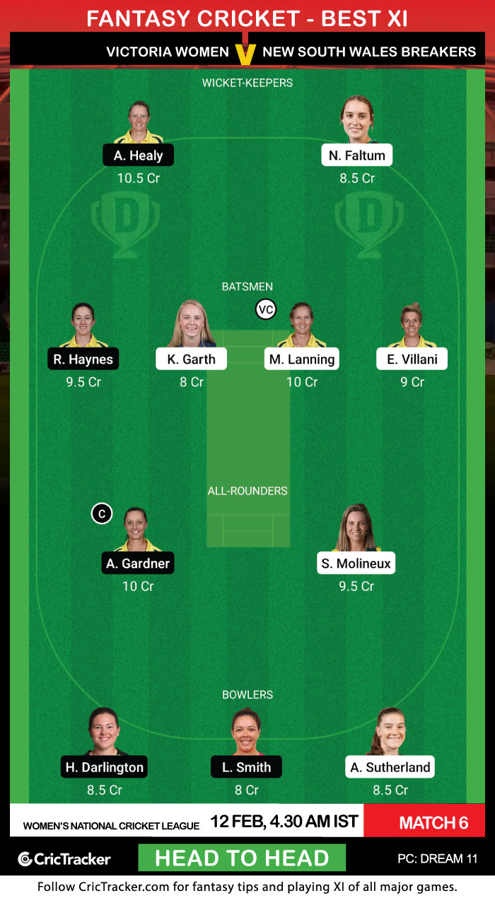 Suggested Playing XI No.1 for VCT-W vs NSW-W Dream11 Fantasy Cricket: