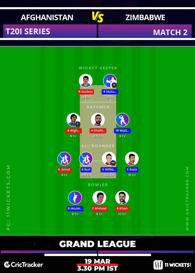 Suggested Playing XI No.2 for AFG vs ZIM 11Wickets Fantasy Cricket: