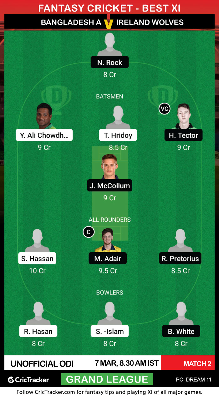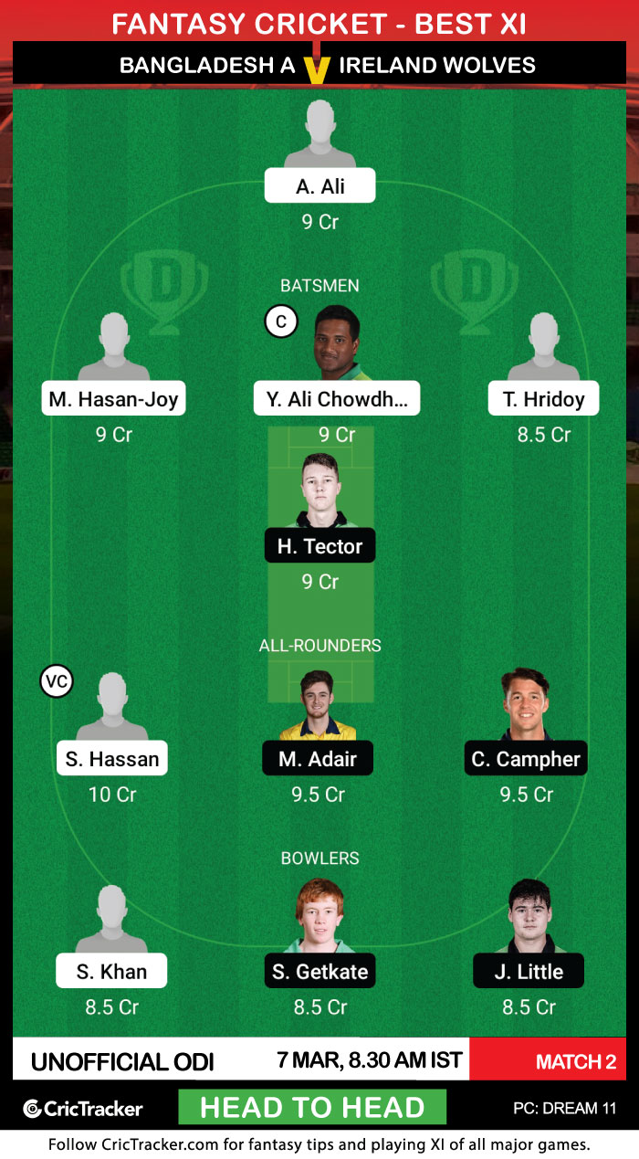 Suggested Playing XI No 2 for BN-A vs IR-A Dream11 Fantasy Cricket