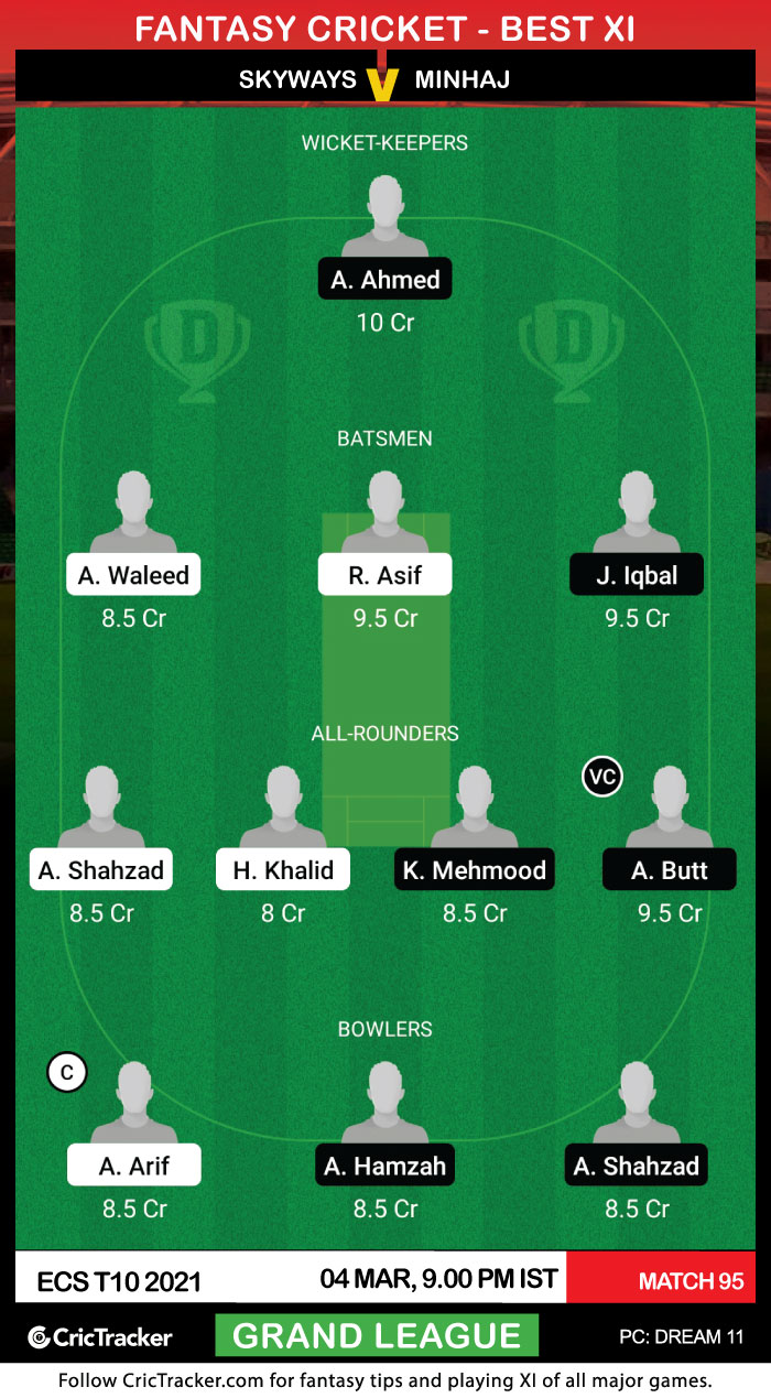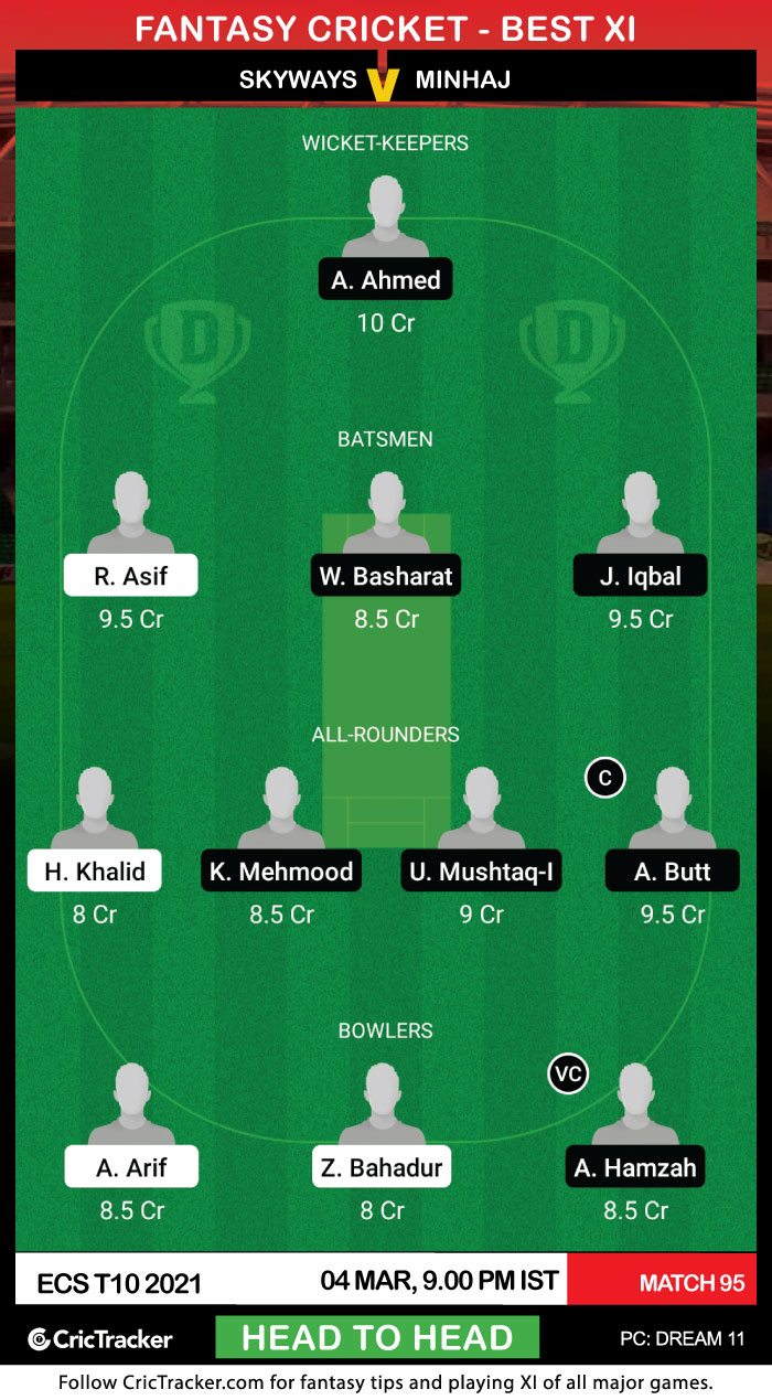 The 95th match of the ECS T10 2021 will be played between Skyways and Minhaj on 4th March at Montjuic Olympic Ground, Barcelona.