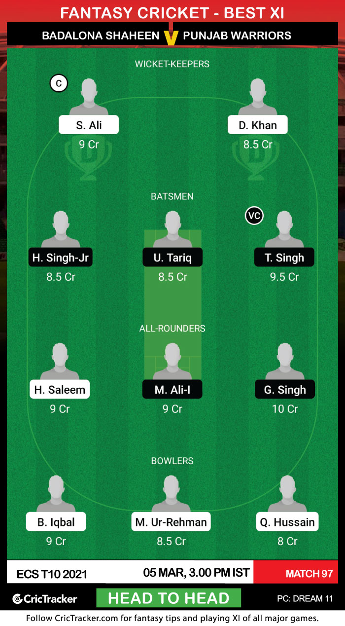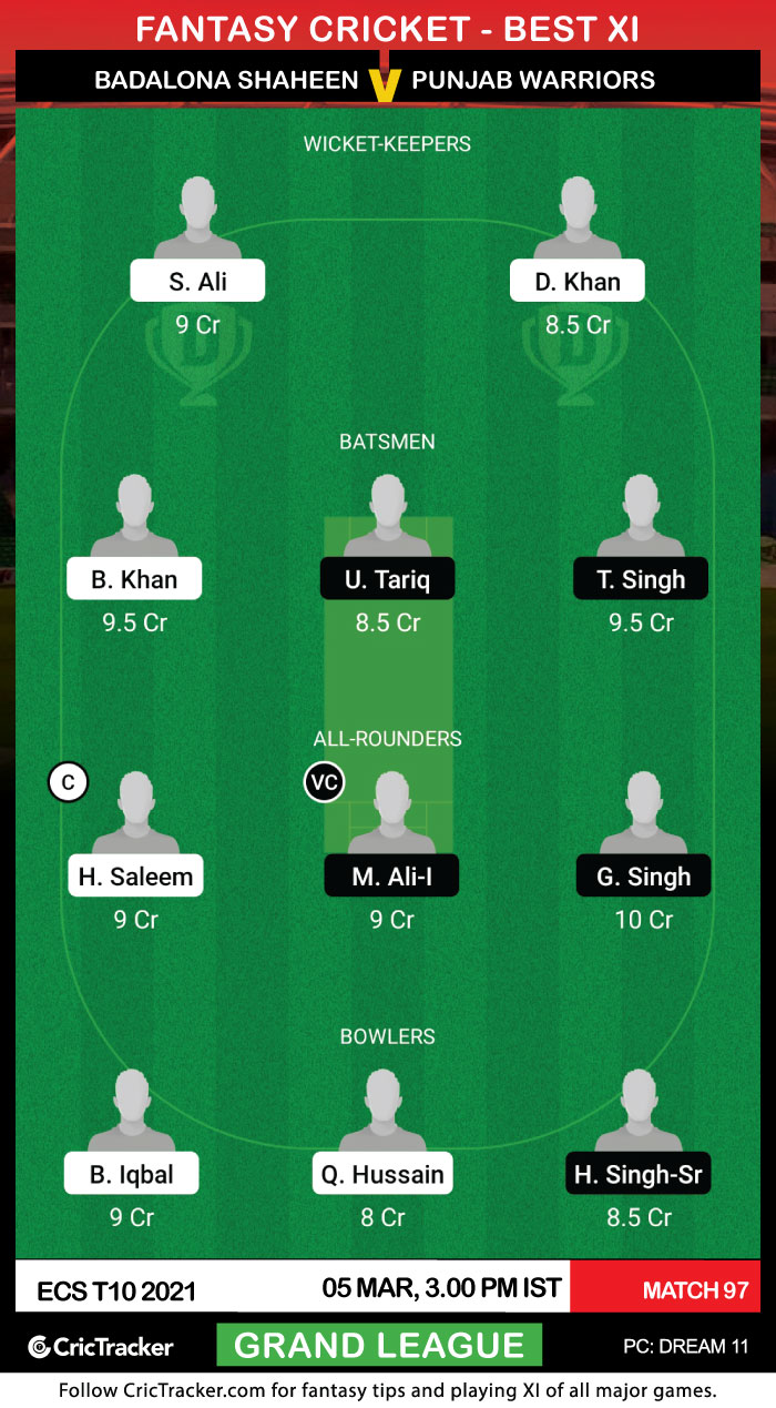 The 97th match of the ECS T10 2021 will be played between Badalona Shaheen and Punjab Warriors on 5th March at Montjuic Olympic Ground in Barcelona.