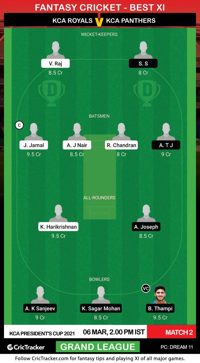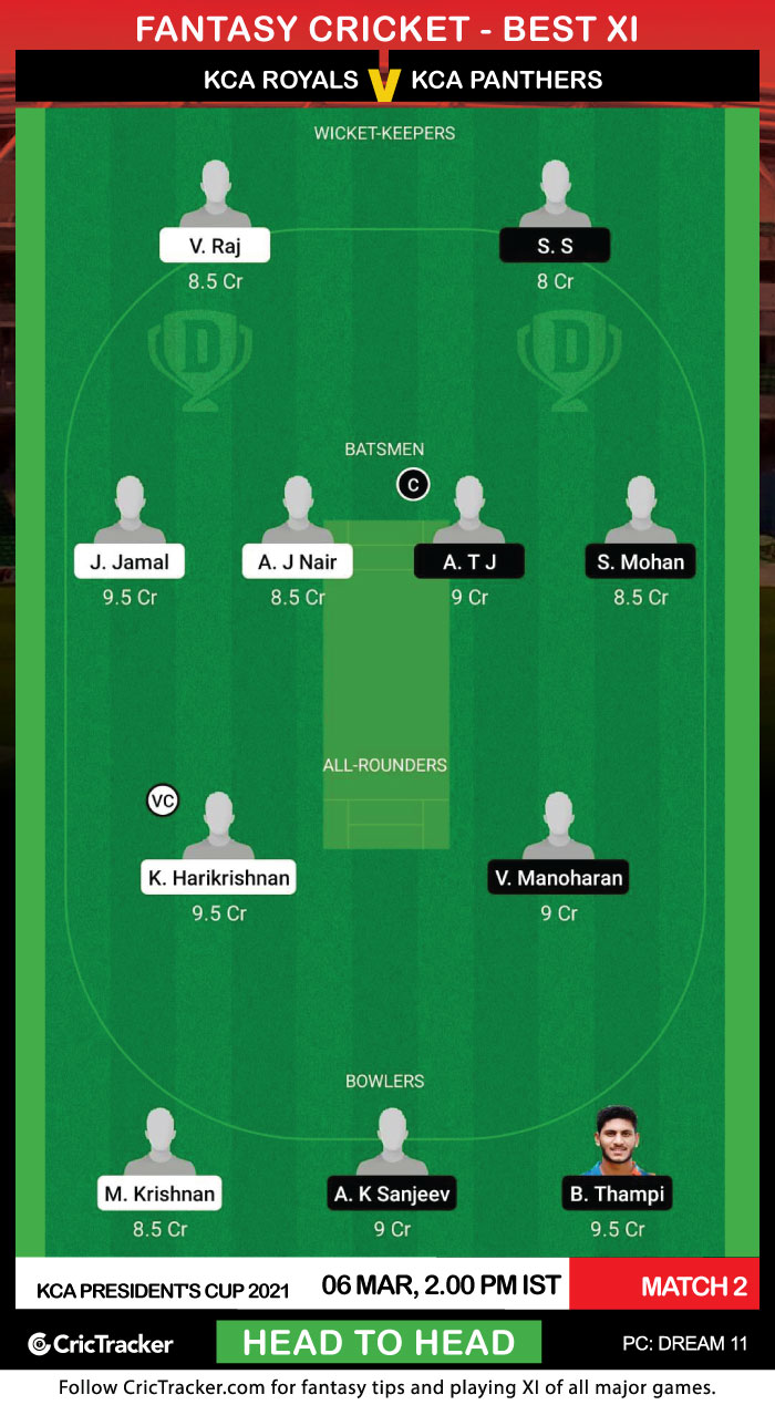 In the second match of the KCA Presidents Cup T20 2021, KCA Panthers will take on KCA Royals. Both the teams are equally strong in each and every department. KCA Panthers have a good combination of good batsmen and all-rounders.