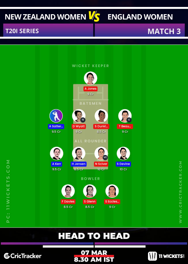 Suggested Playing XI No.1 for NZ-W vs ENG-W 11Wickets Fantasy Cricket: