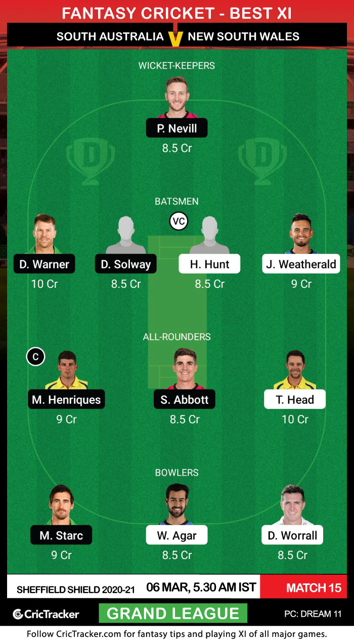 Suggested Playing XI No.1 for SAU vs NSW Dream11 Fantasy Cricket: