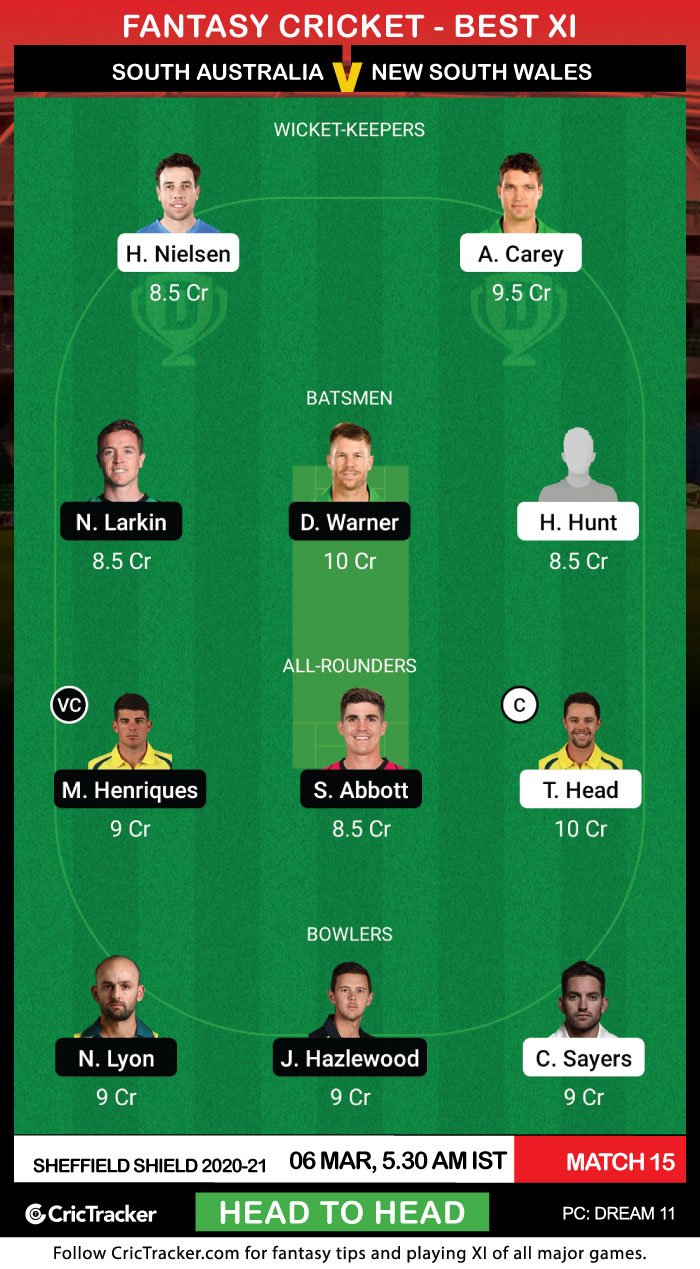 All-rounders rule the roost in the longest format of the game. Consider picking all 3 of Moises Henriques, Sean Abbott, and Travis Head in your Dream11 Fantasy team.