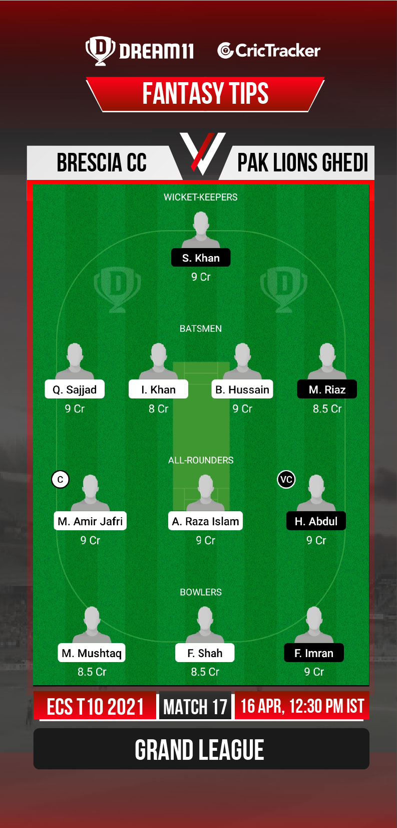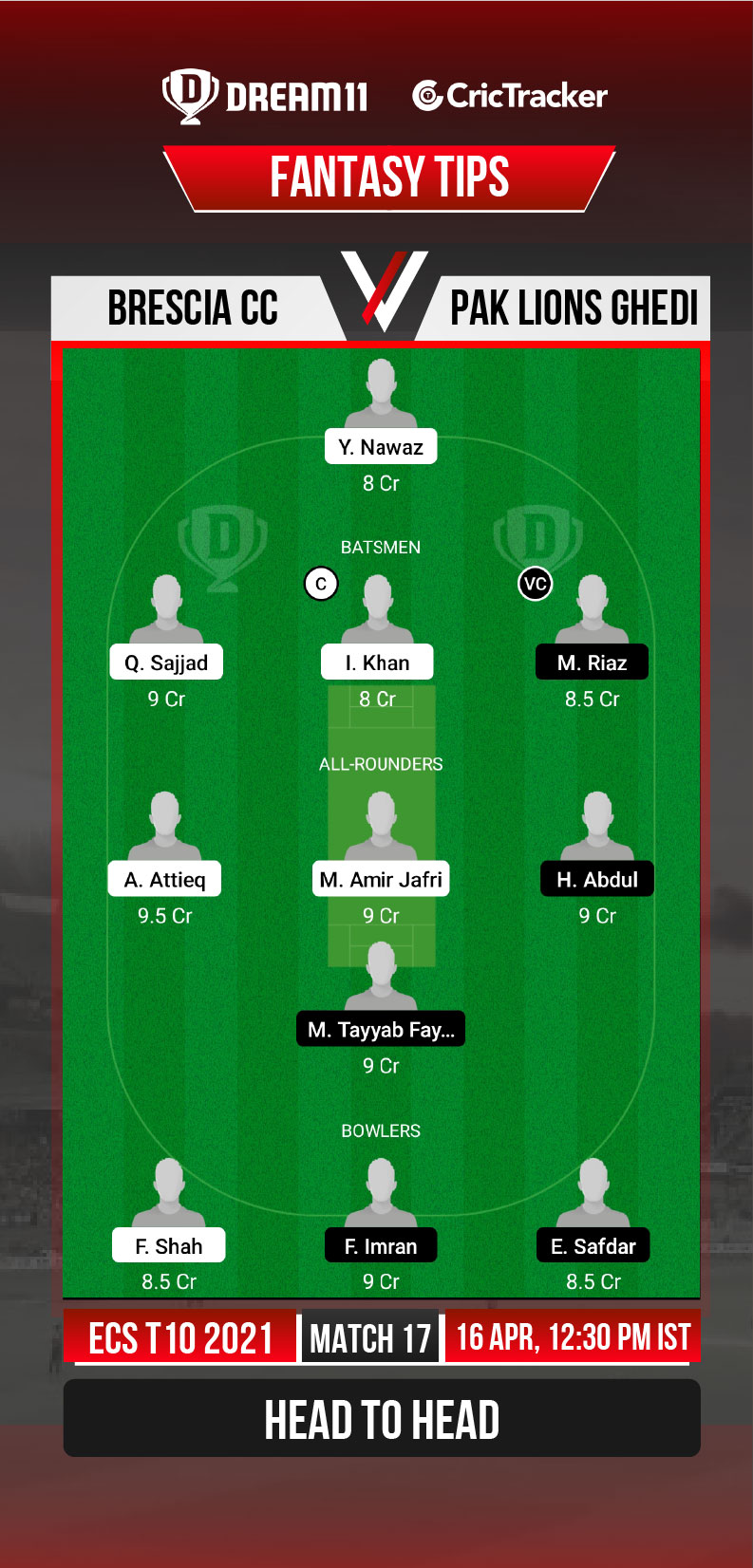 Brescia have already made it to the playoffs with two of their matches yet to be played. On the final day of the group matches, they will be playing two matches against Pak Lions Ghedi. With 3 wins, one loss, and 2 no results, they currently are at 2nd spot in the standings with 8 points.