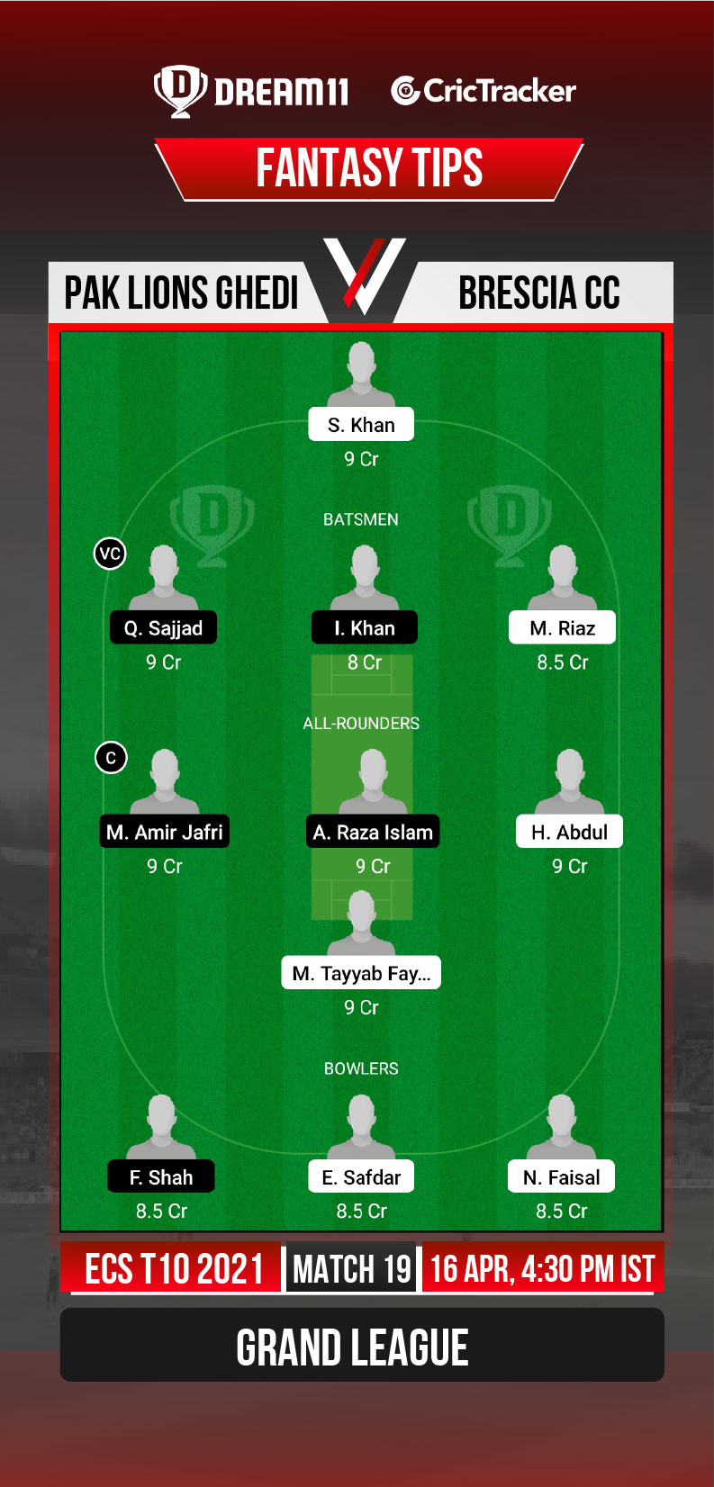 PLG vs BRE Must Picks for Dream11 Fantasy Cricket: