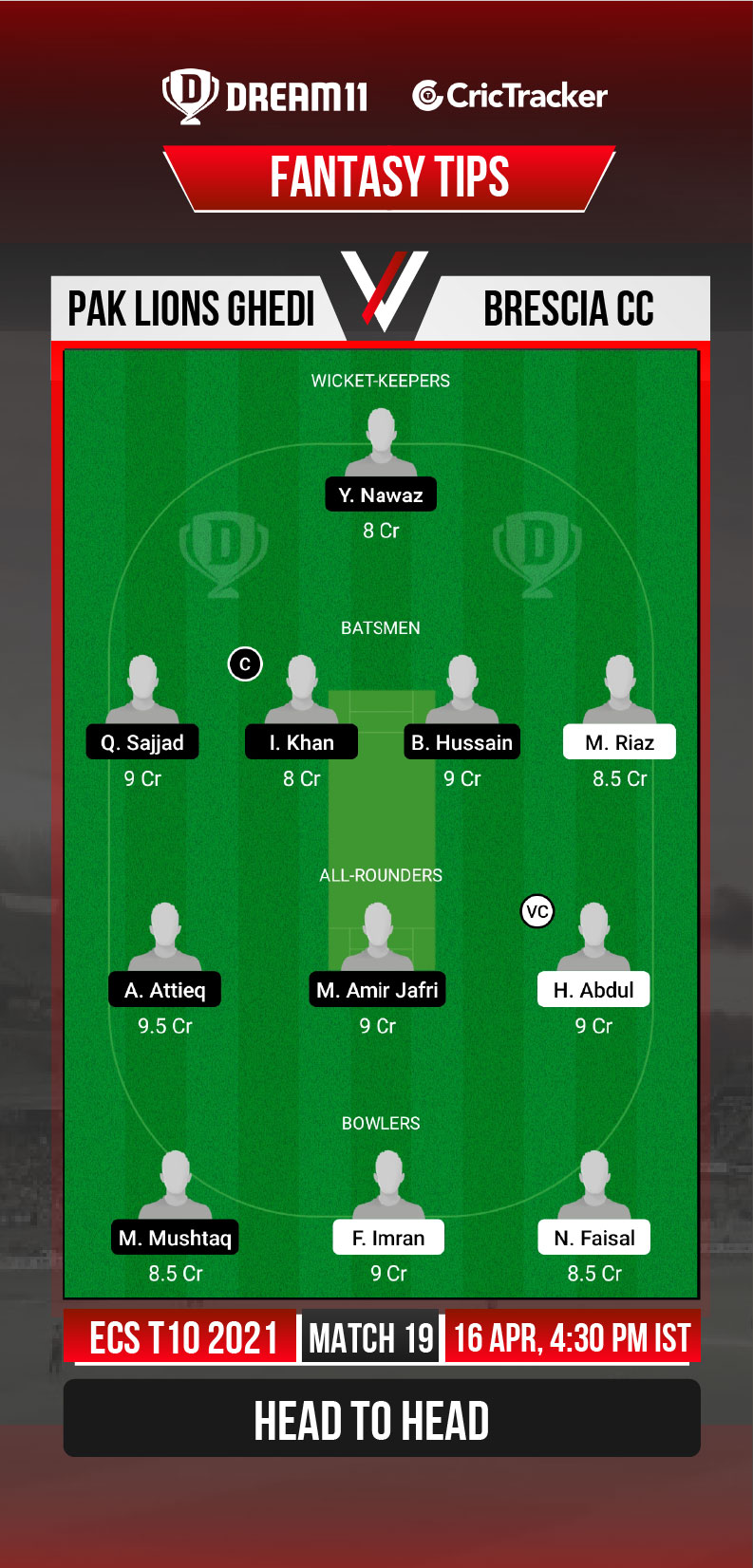 Brescia CC will consider this opportunity as a preparation for their knockout fixtures since they already have secured themselves a place in the playoffs. With 3 wins, one loss and 2 no results they are at 2nd spot in the table with 8 points.