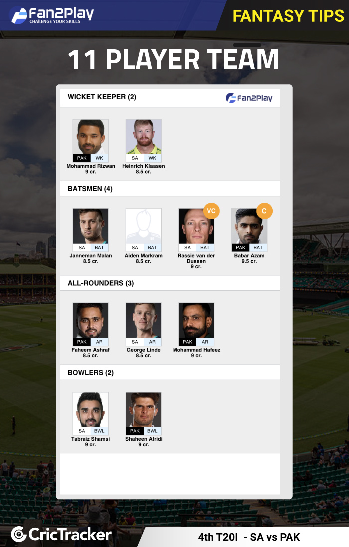 Mohammad Rizwan, Heinrich Klaasen, Janneman Malan, Aiden Markram, Rassie van der Dussen (VC), Babar Azam (C), Faheem Ashraf, George Linde, Mohammad Hafeez, Tabraiz Shamsi, Shaheen Afridi