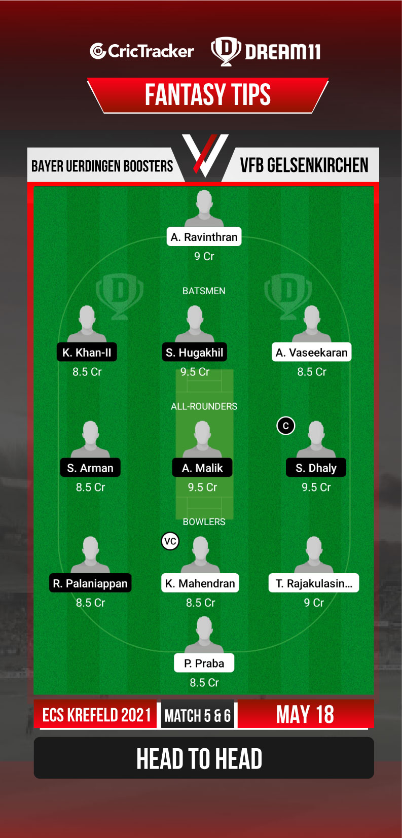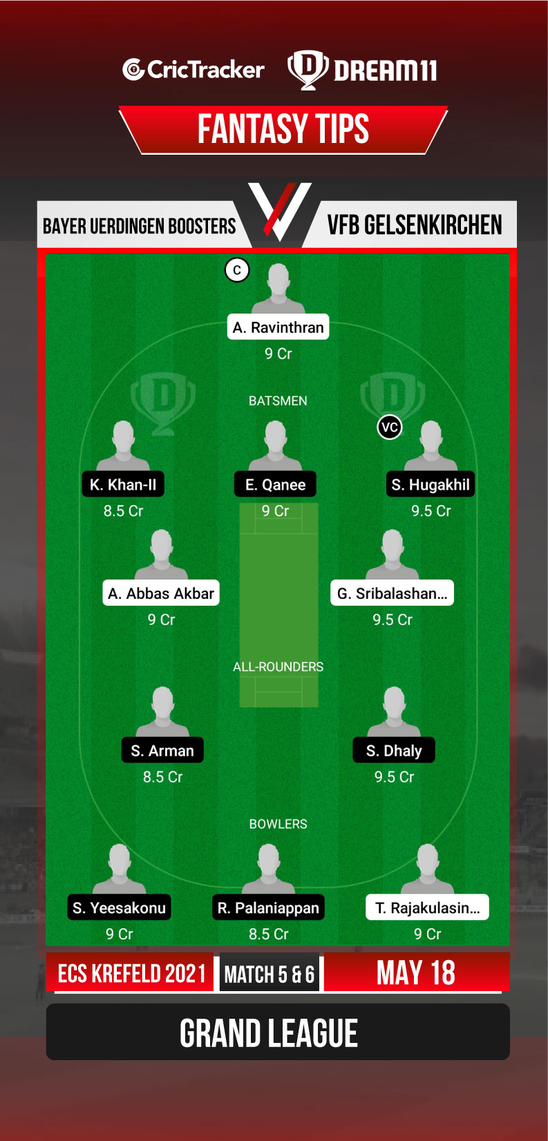 Suggested Playing XI No.2 for BUB vs VG Dream11 Fantasy Cricket: