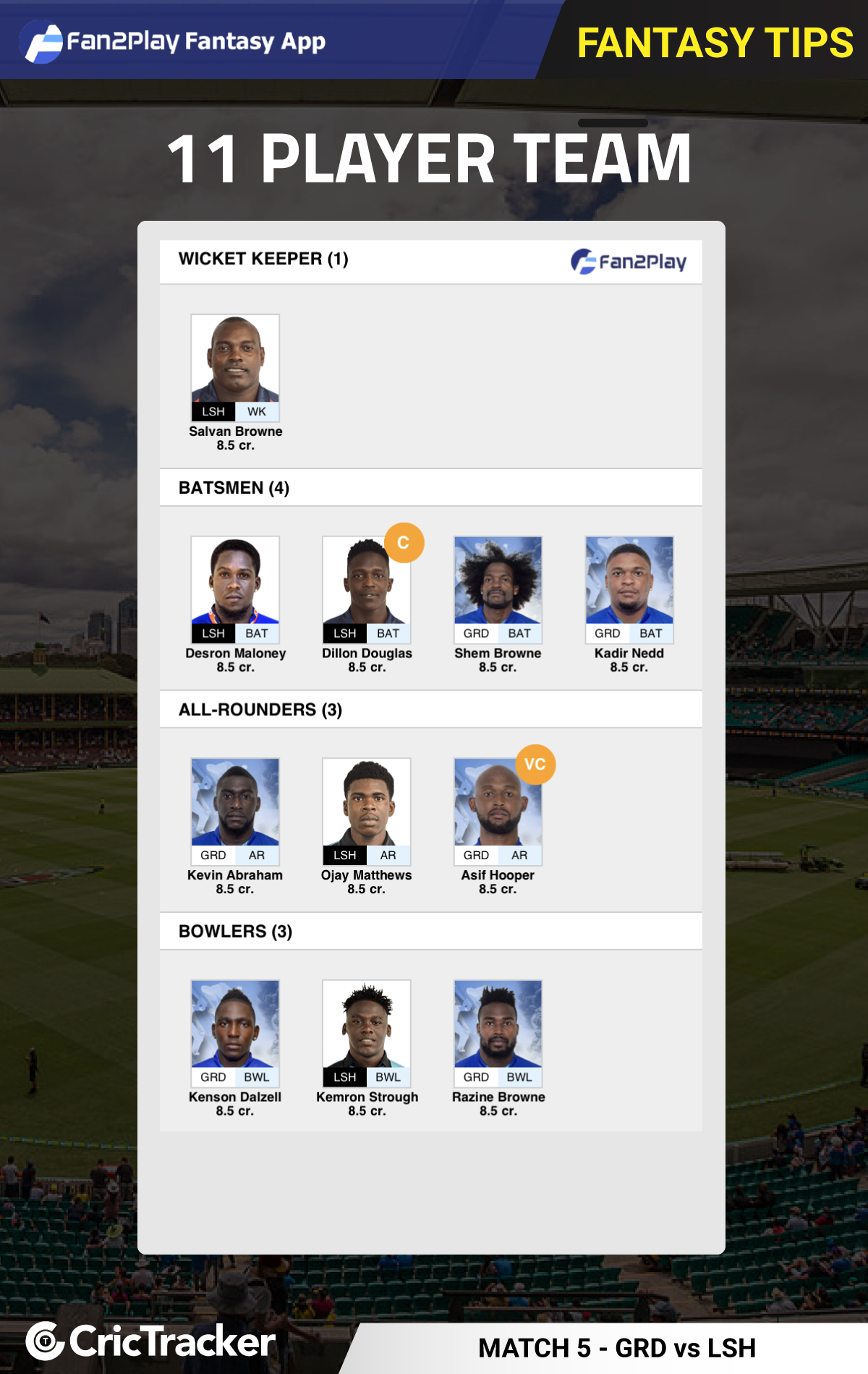 Captaincy Picks for GRD vs LSH