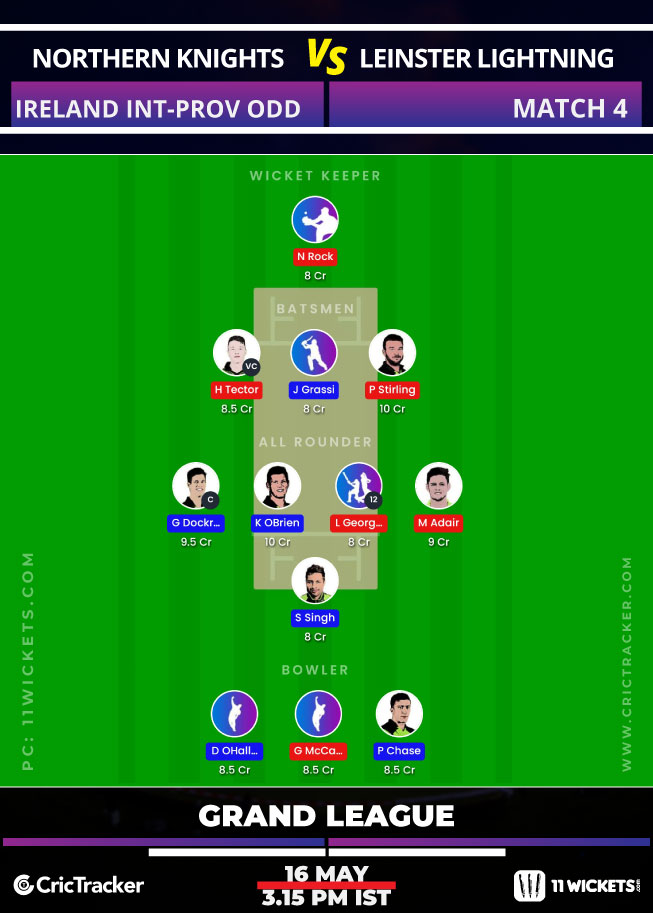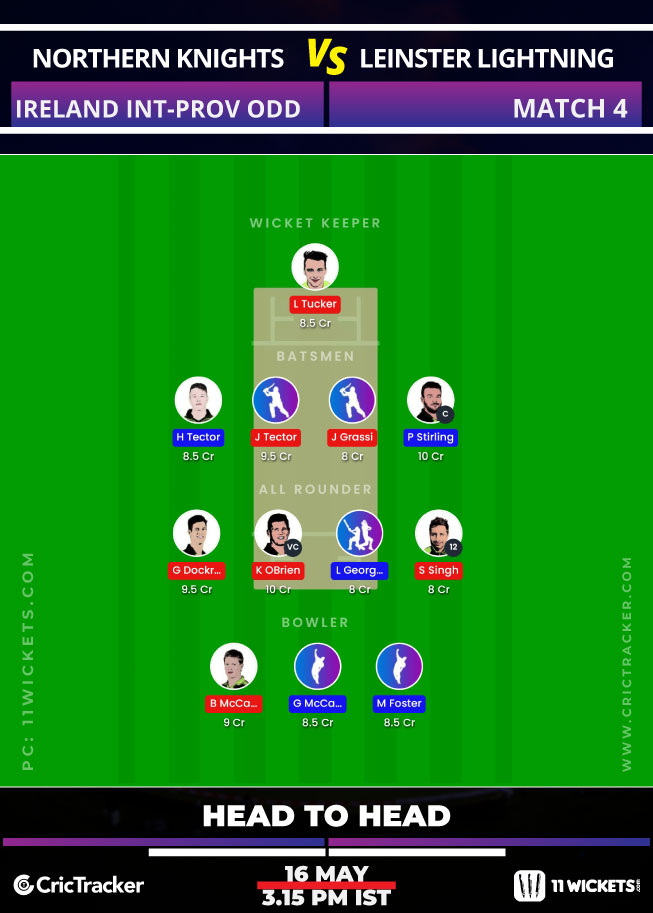 Kevin O’Brien played a handy knock of 37 runs in the previous meeting against Northern Knights. He can also be handy with his cunning medium-pace bowling.