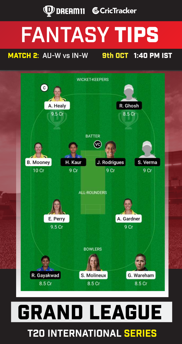 AU-W vs IN-W Must Picks for Dream11 Fantasy Cricket: