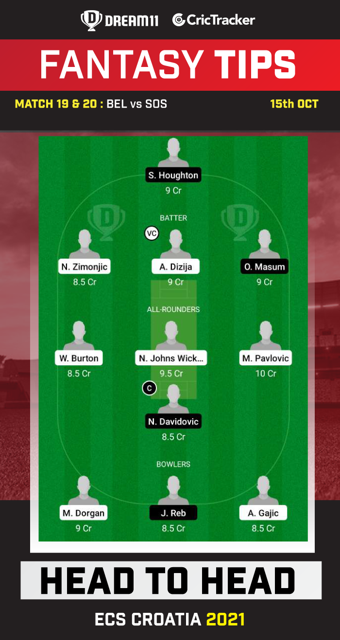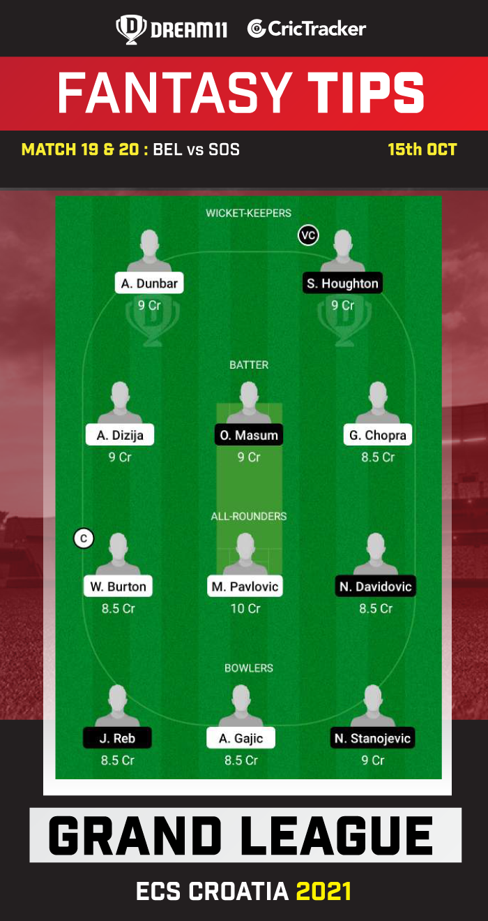 Suggested Playing XI No.1 for BEL vs SOS Dream11 Fantasy Cricket: