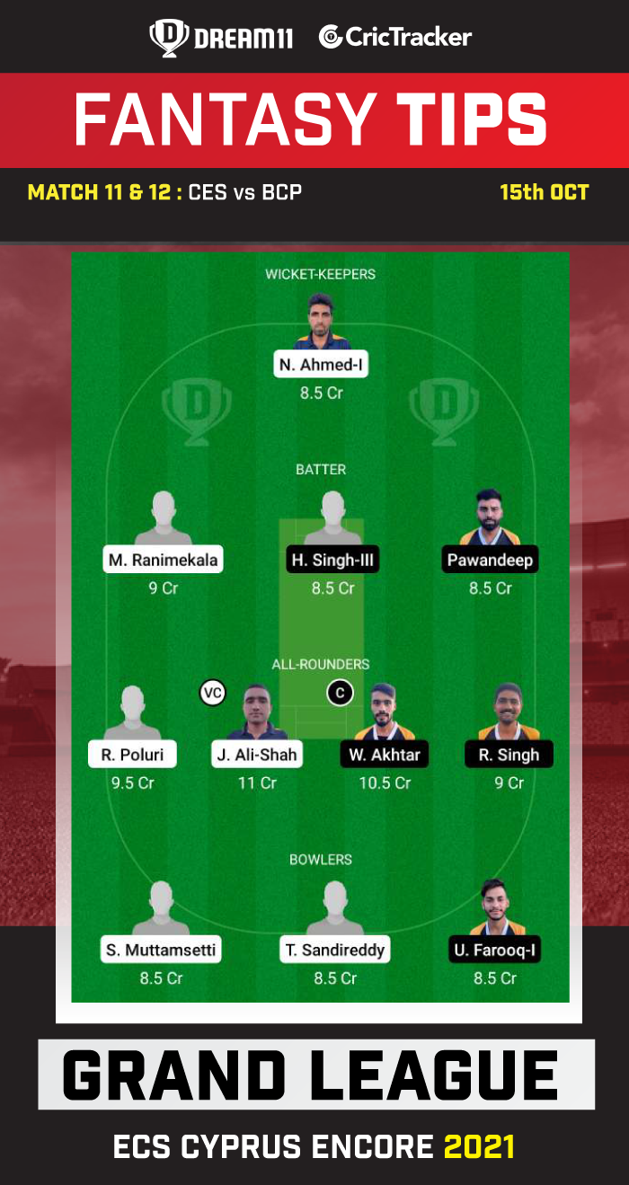Suggested Playing XI No.1 for CES vs BCP Dream11 Fantasy Cricket: