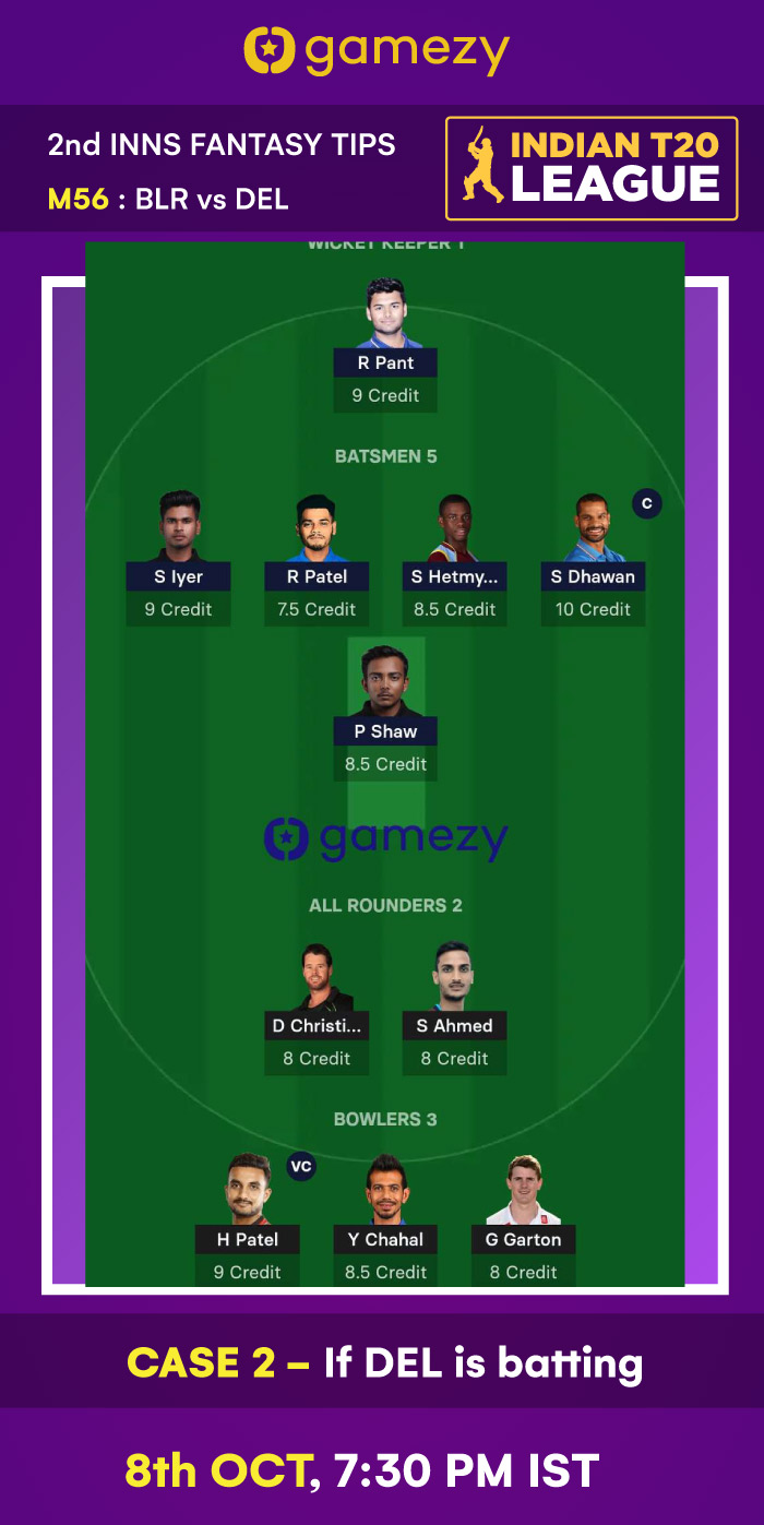 Rishabh Pant, Shreyas Iyer, Ripal Patel, Shimron Hetmyer, Shikhar Dhawan (C), Prithvi Shaw, Dan Christian, Shahbaz Ahmed, Harshal Patel (VC), Yuzvendra Chahal, George Garton