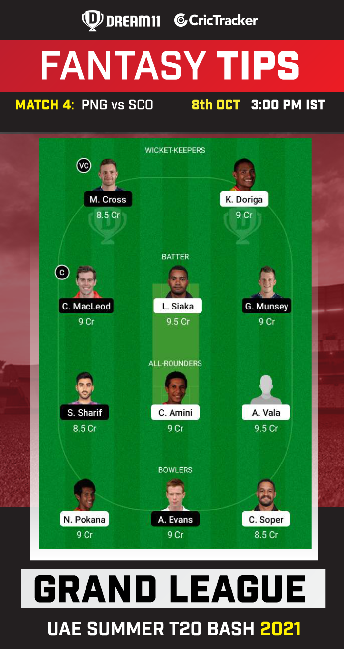 Suggested Playing XI No.1 for PNG vs SCO Dream11 Fantasy Cricket: