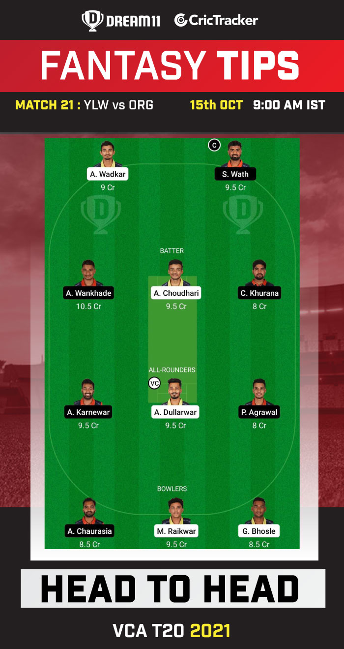 Suggested Playing XI No.1 for YLW vs ORG Dream11 Fantasy Cricket: