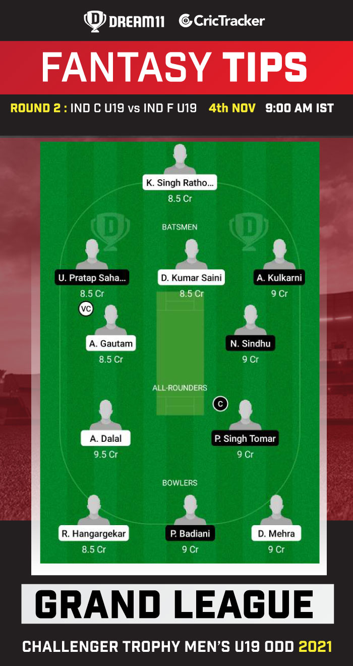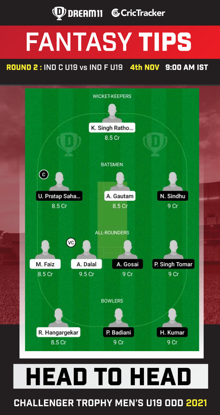 Top Picks for IND C U19 vs IND F U19 Dream11 Match: