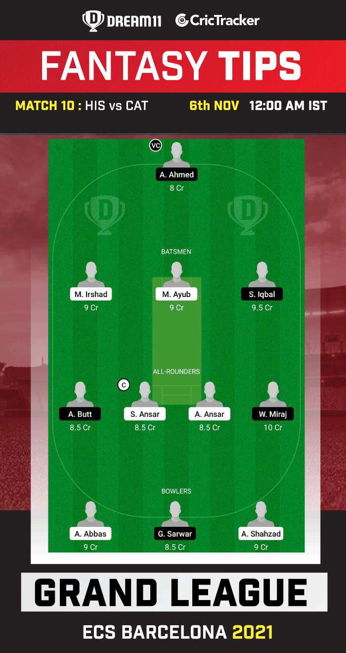 Suggested Playing XI No.1 for HIS vs CAT Dream11 Fantasy Cricket: