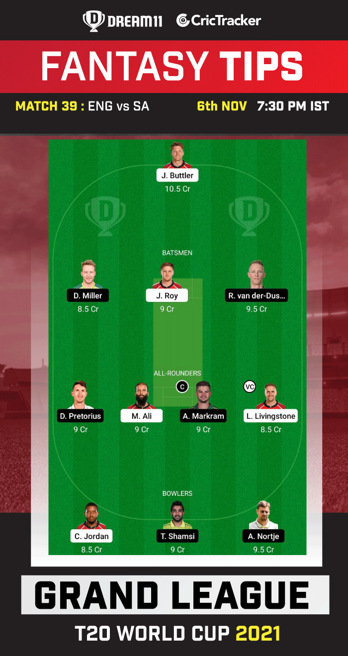 David Miller is a finisher for South Africa. In 3 innings in this World Cup, he has scored 44 runs at a strike rate of 133.33. You can take a risk and pick him as your fantasy team captain.