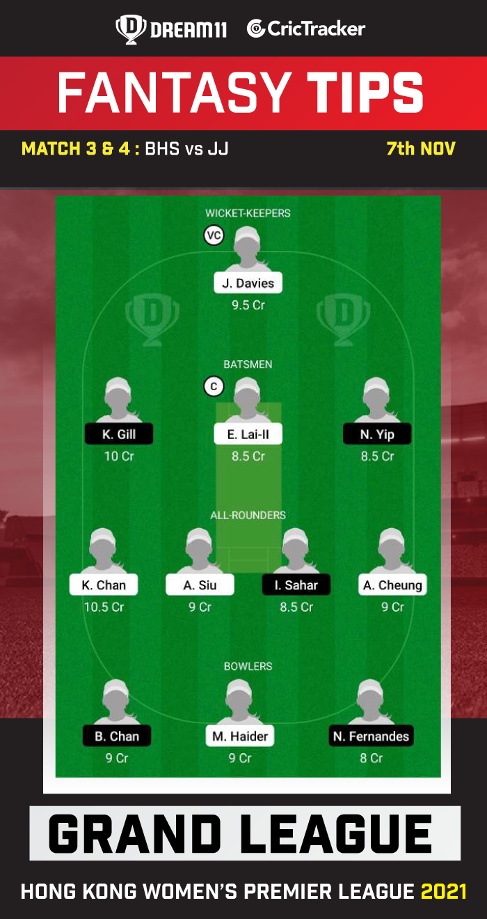 Suggested Playing XI No.1 for BHS vs JJ Dream11 Fantasy Cricket: