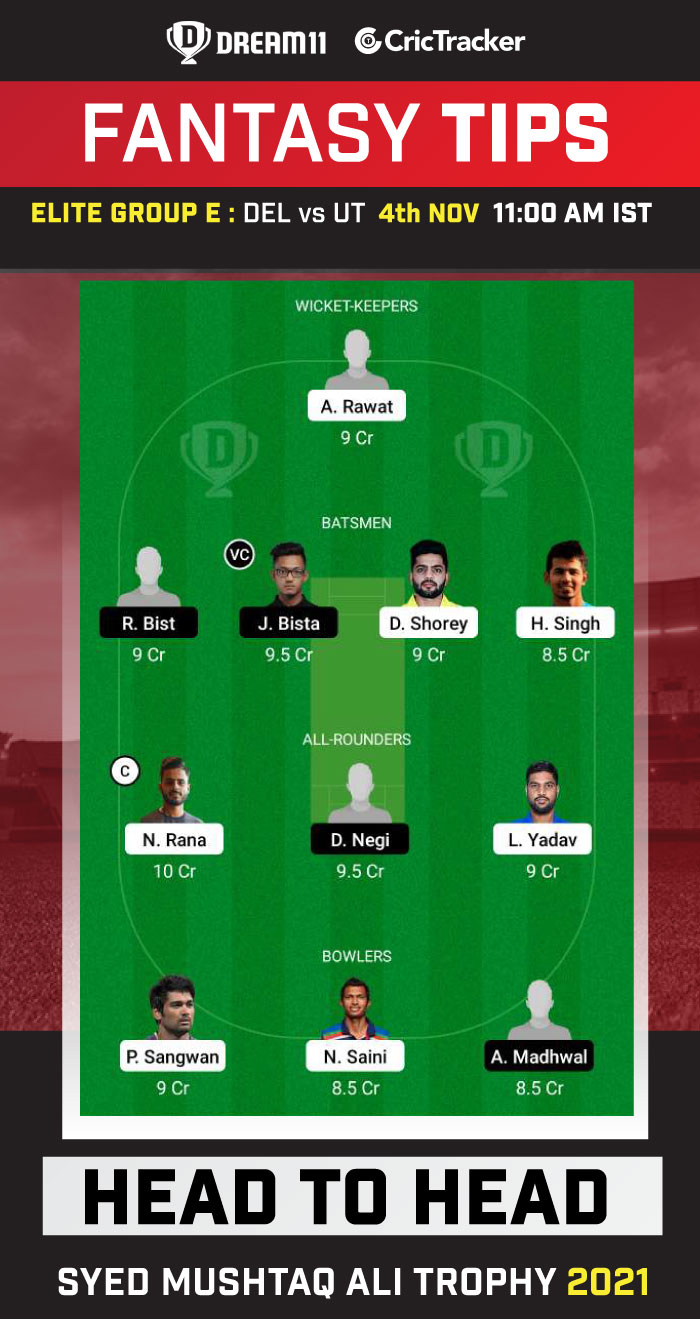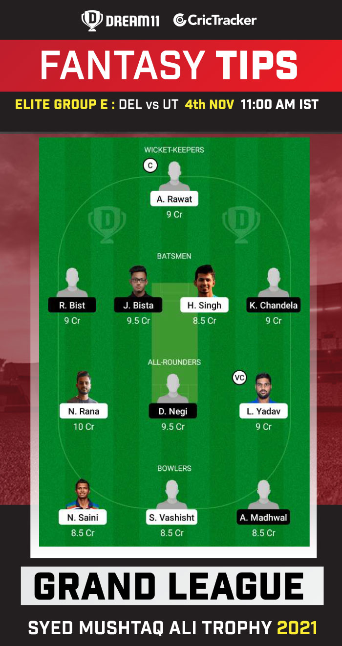 Suggested Playing XI No.1 for DEL vs UT Dream11 Fantasy Cricket: