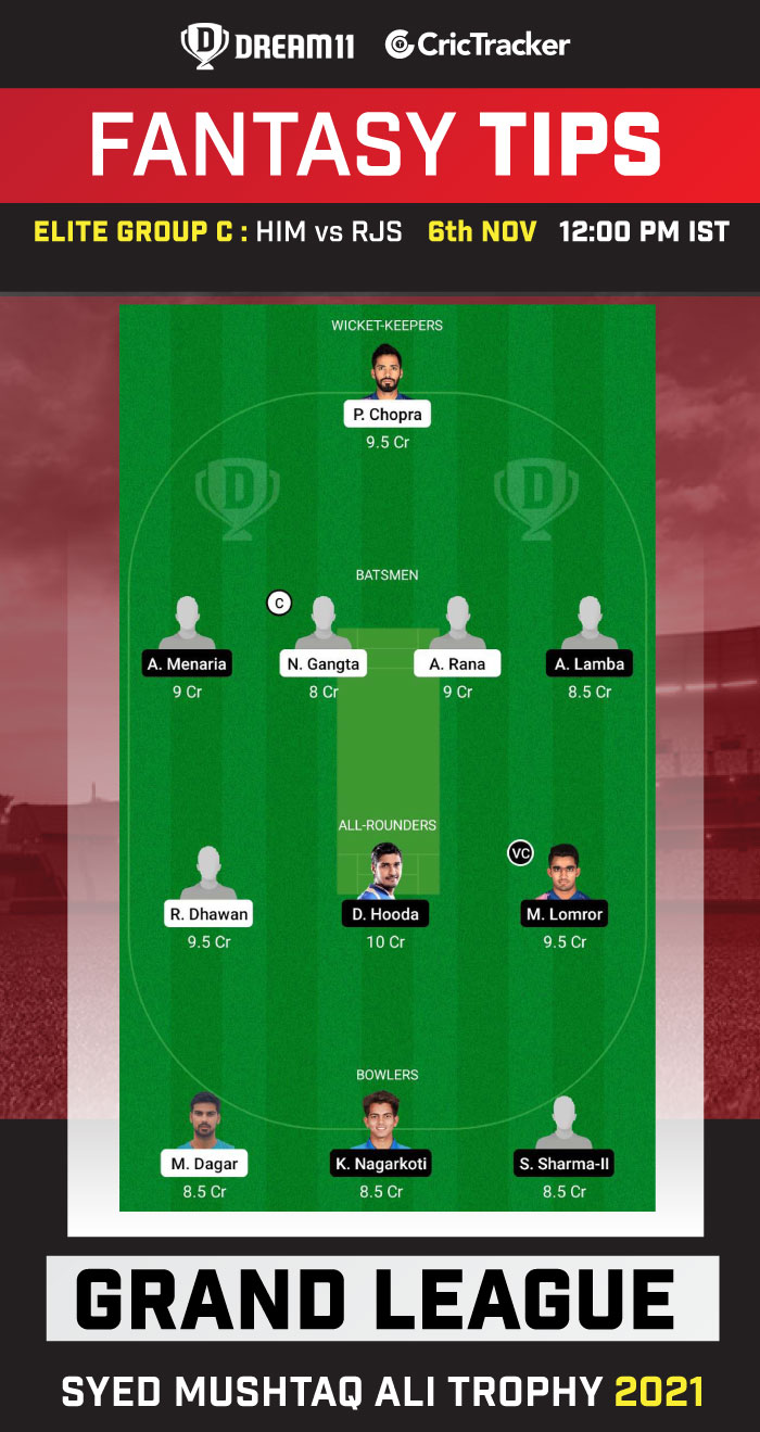 Suggested Playing XI No.1 for HIM vs RJS Dream11 Fantasy Cricket: