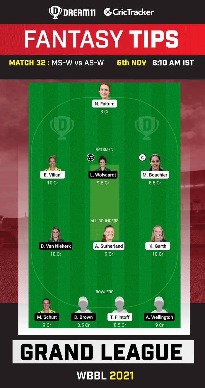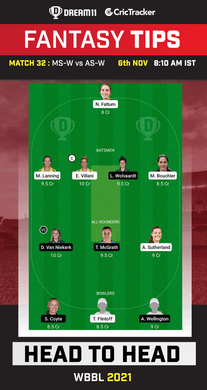 MS-W vs AS-W Must Picks for Dream11 Fantasy Cricket: