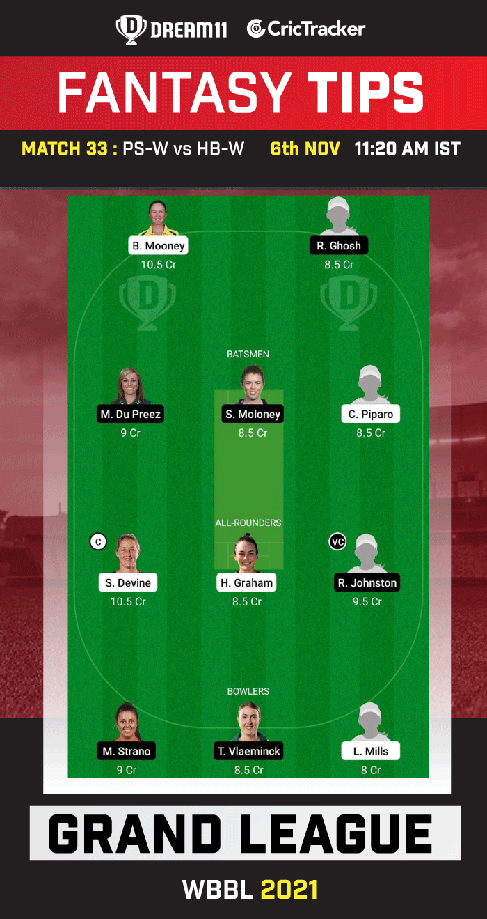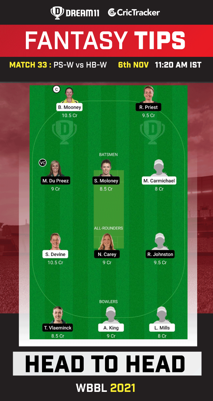 Suggested Playing XI No.1 for PS-W vs HB-W Dream11 Fantasy Cricket: