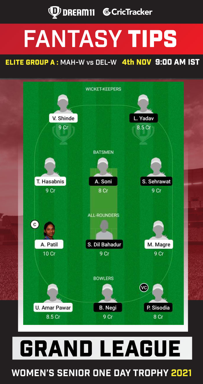 Top Picks for MAH-W vs DEL-W Dream11 Match: