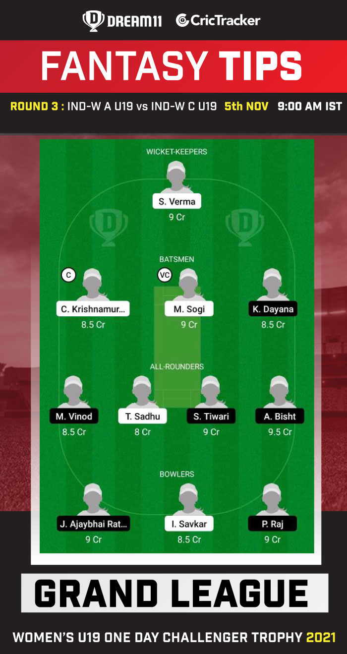 Top Picks for IND-W A U19 vs IND-W C U19 Dream11 Match: