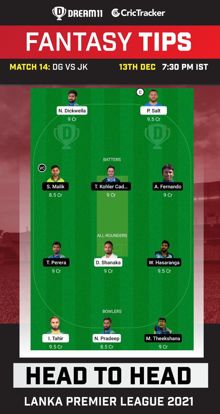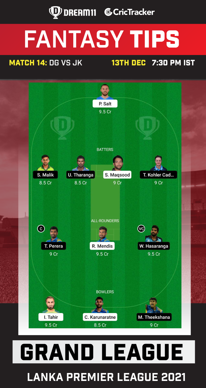 Suggested Playing XI No.1 for DG vs JK Dream11 Fantasy Cricket:
