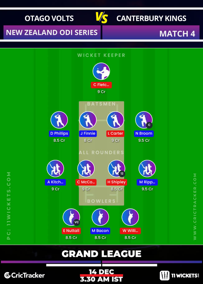 Michael Rippon was exceptional for Otago in their first match against Wellington. He scalped four wickets in the match to exude his sheer flair and thus can be a good pick for this game.