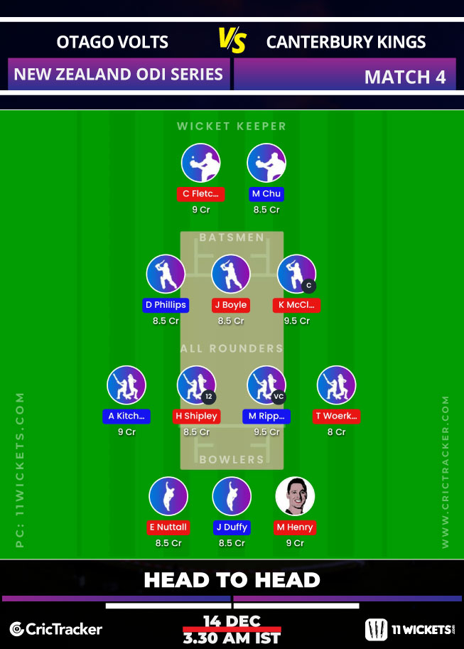 Canterbury Kings and Otago Volts will battle it out against each other in Match 4 of the New Zealand ODI Series. The former won their first match of the series by seven wickets. The team chased down the target of 240 to exude their dominance over the opposition. However, their last game was abandoned.