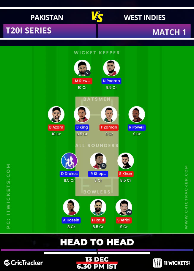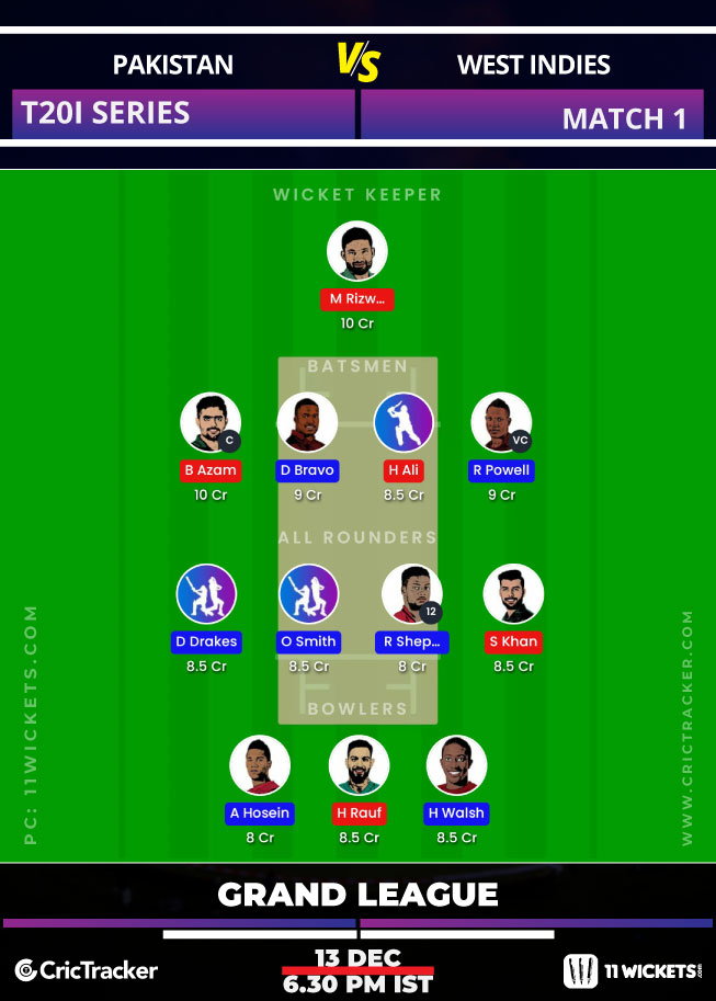 Suggested Playing XI No.1 for PAK vs WI 11Wickets Fantasy Cricket