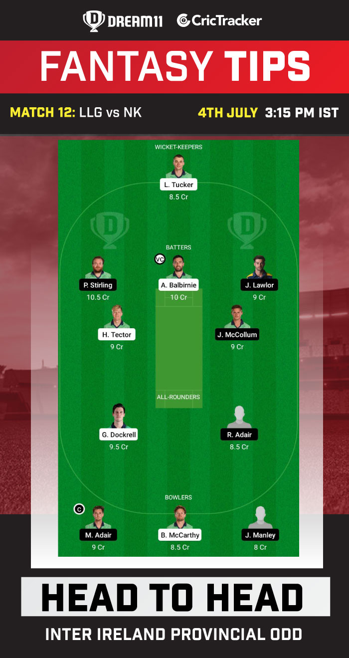 Suggested Playing XI No.2 for LLG vs NK Dream11 Fantasy Cricket: